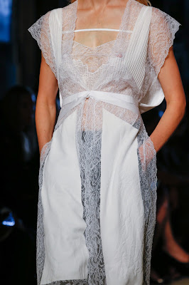 flimsy silk dresses with different kinds of lace - which created a sensual and sexy atmosphere. These were followed by amazing gowns that made us question ourselves wether this collection belonged to Haute Couture or not. Nude makeup gradually gave place to amazing face jewelry. We can say